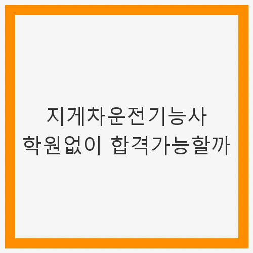 지게차운전기능사 학원없이 합격가능할까? 독학의 길과 전략